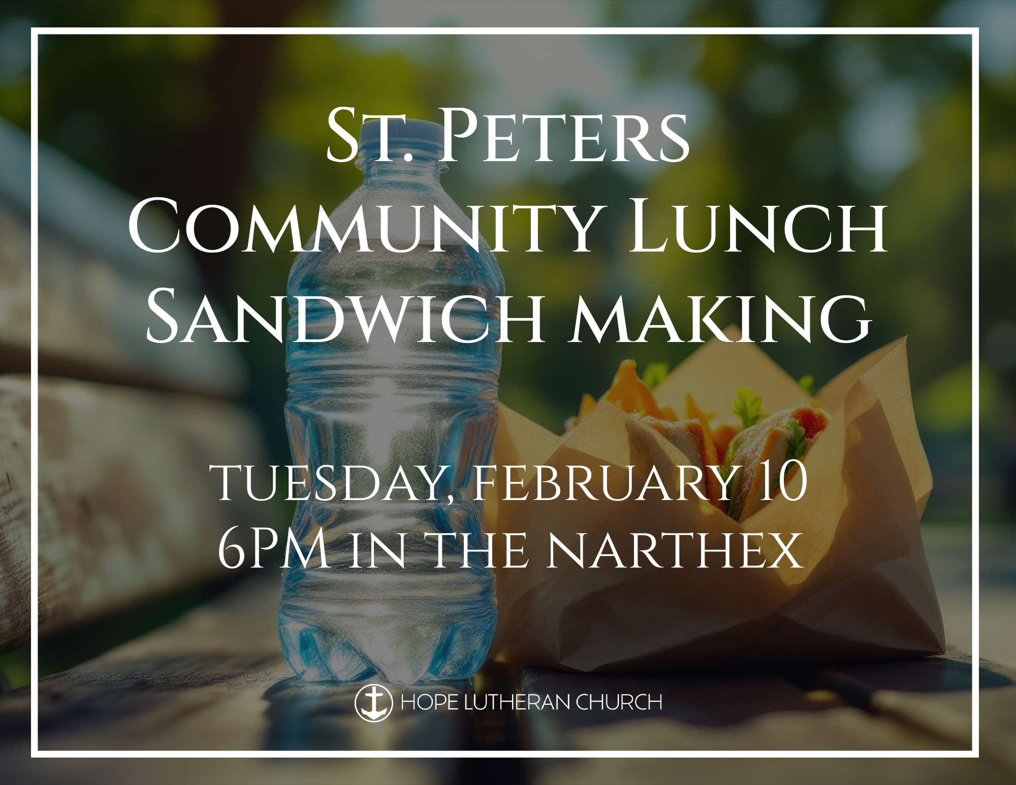 Hope is continuing our support for the St. Peter’s Community Meal, and we’d love for you to be part of it! Join us on Tuesday, February 10 at 6 PM as we gather to make sandwiches and pack bag lunches for those in need.
