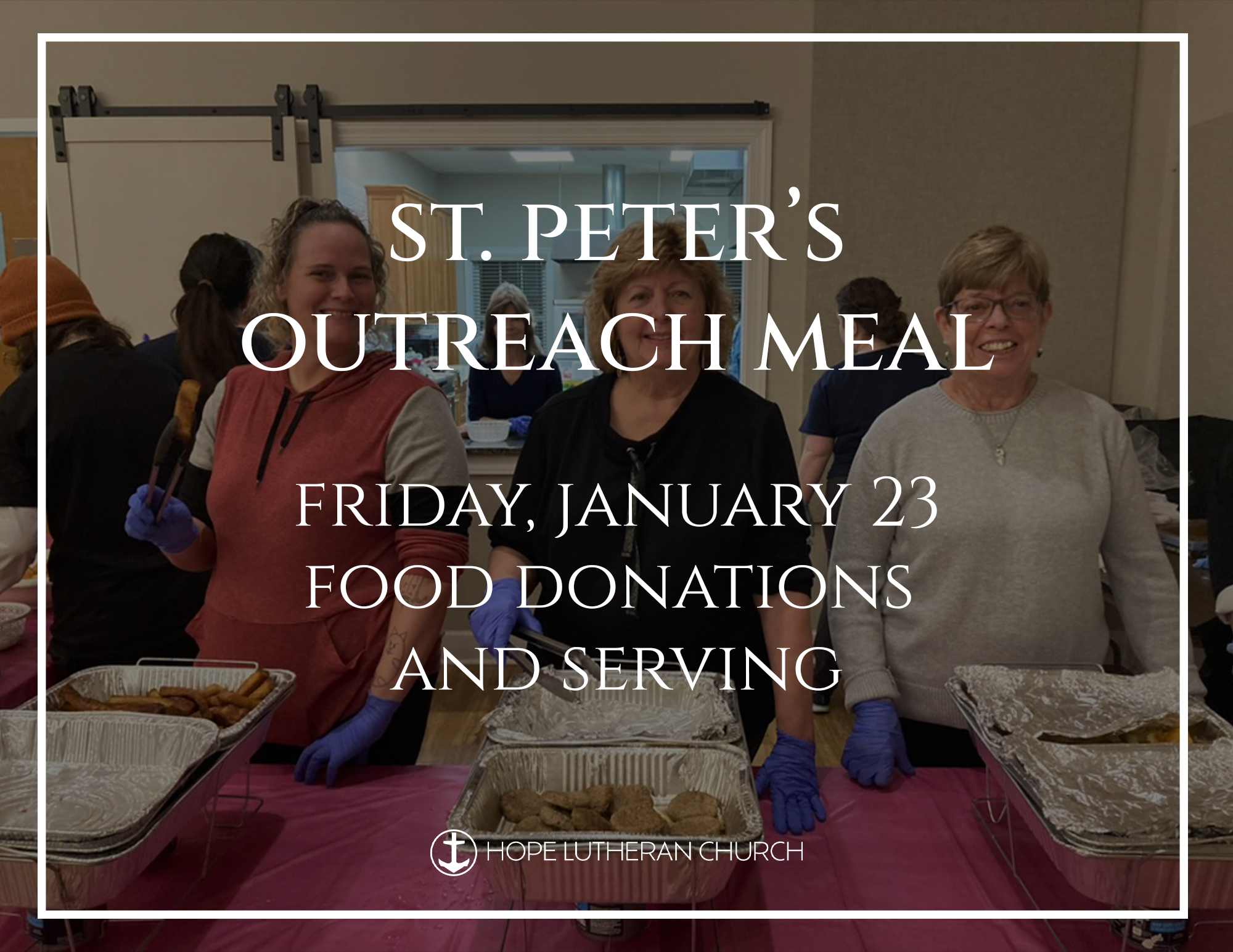 We’re getting ready to serve our neighbors through our Outreach Meal at St. Peter’s on January 23, and we’d love your help! From food prep to serving and clean-up, every role makes a difference and helps us share a warm meal and God’s love with our community.